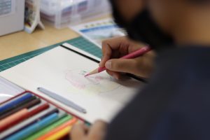 『オリジナルノート作り』は、自分が描いたイラストが表紙のノートを作るイベントです。
