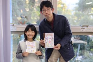 出来上がったノートと一緒に「はい、チーズ!」